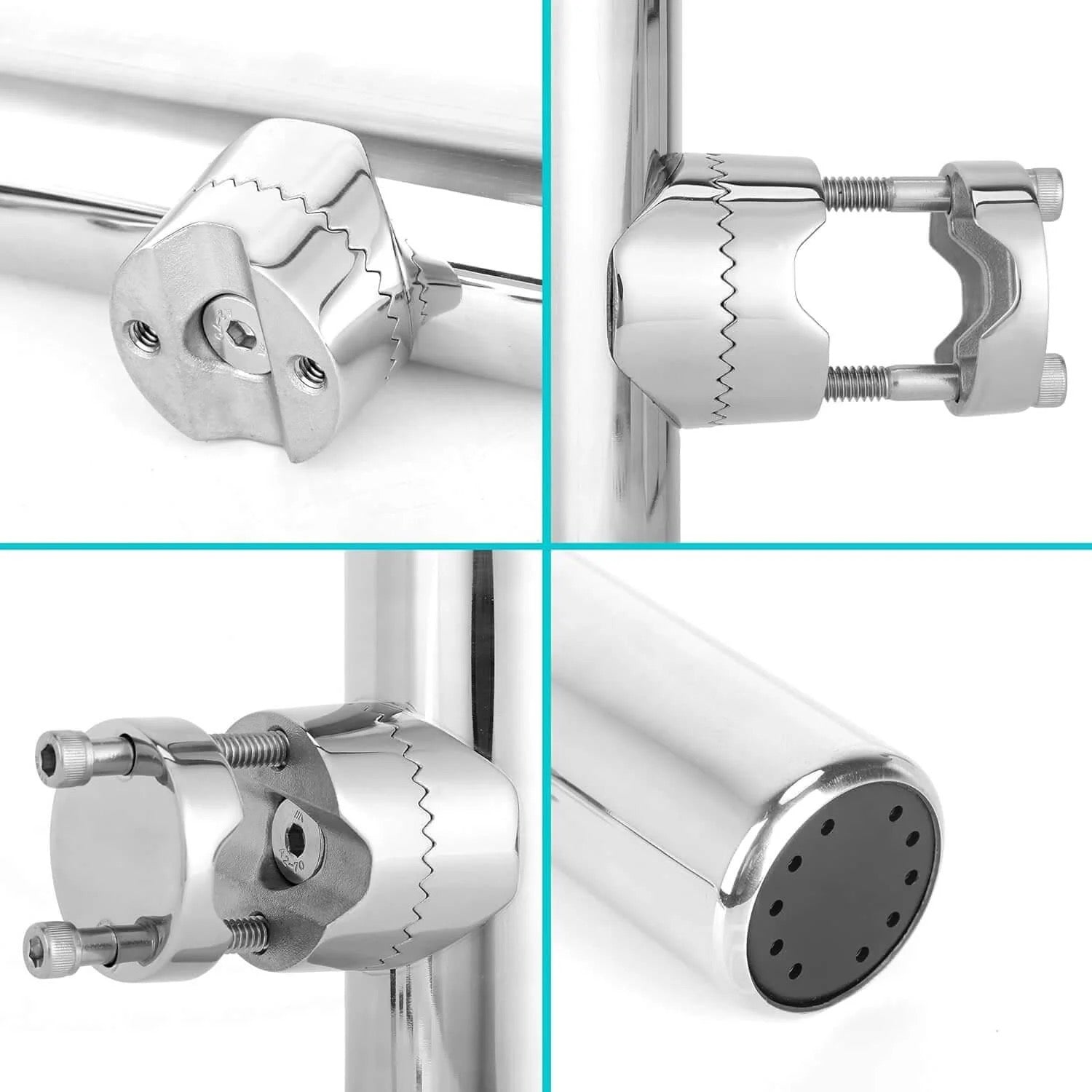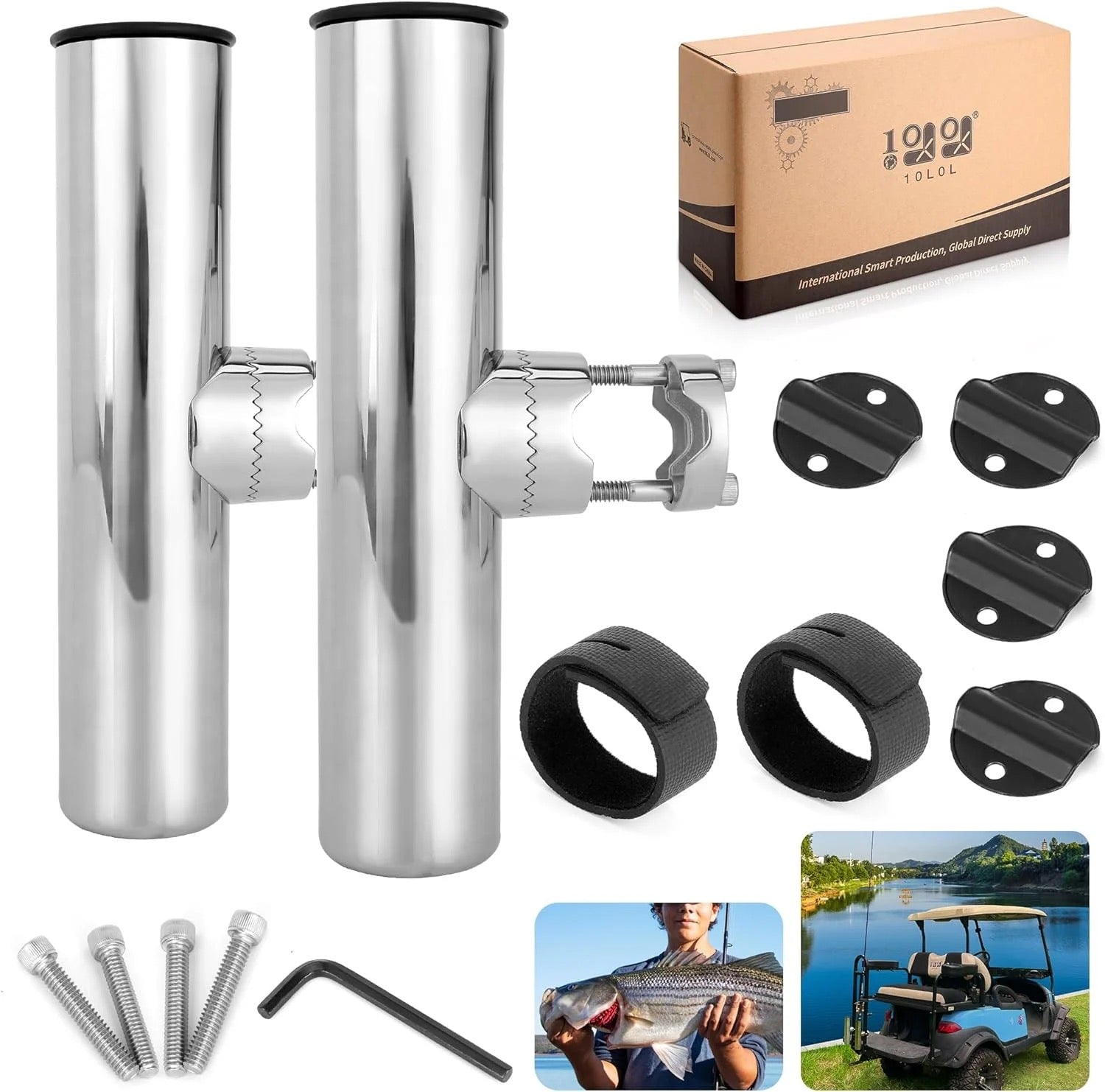 Specifically for Golf Carts: The 2 sets of screws of the fishing rod holder are specifically modified longer for golf carts with 7/8" to 1" square or round rails.