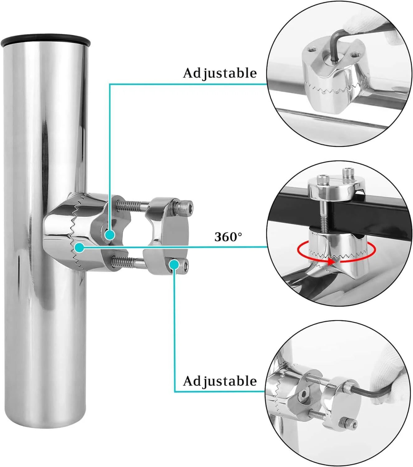 Made to Last Outside: This fishing rod holder is made of non-corrosive stainless steel material. And rainwater can escape out the bottom of the rod holder.